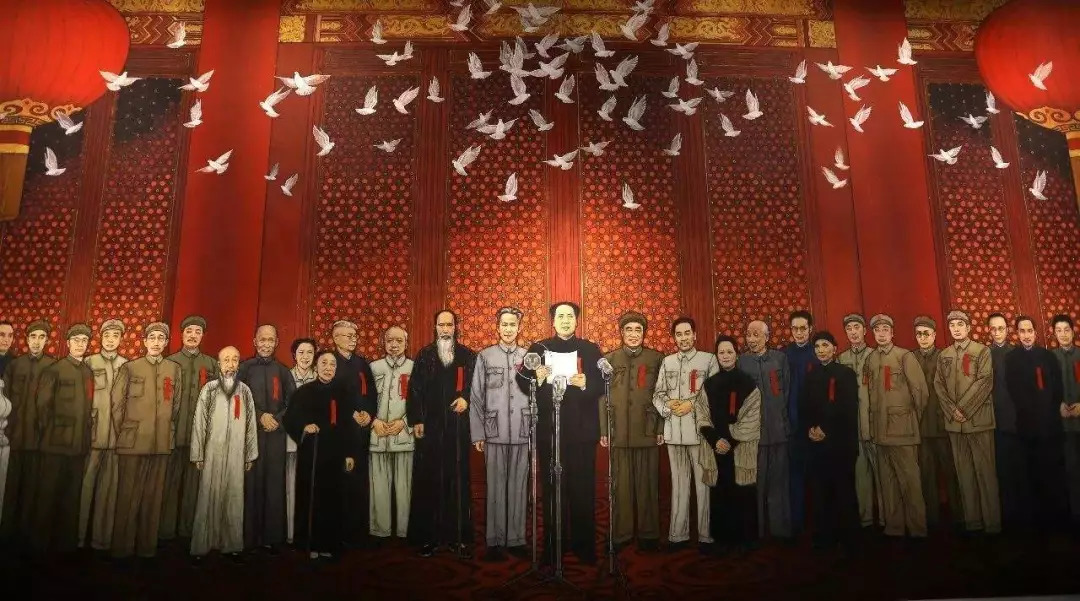 1949年10月1日,中央人民政府主席毛澤東在北京天安門廣場,開國大典上莊嚴宣告中華人民共和國成立并親手升起了第一面五星紅旗。