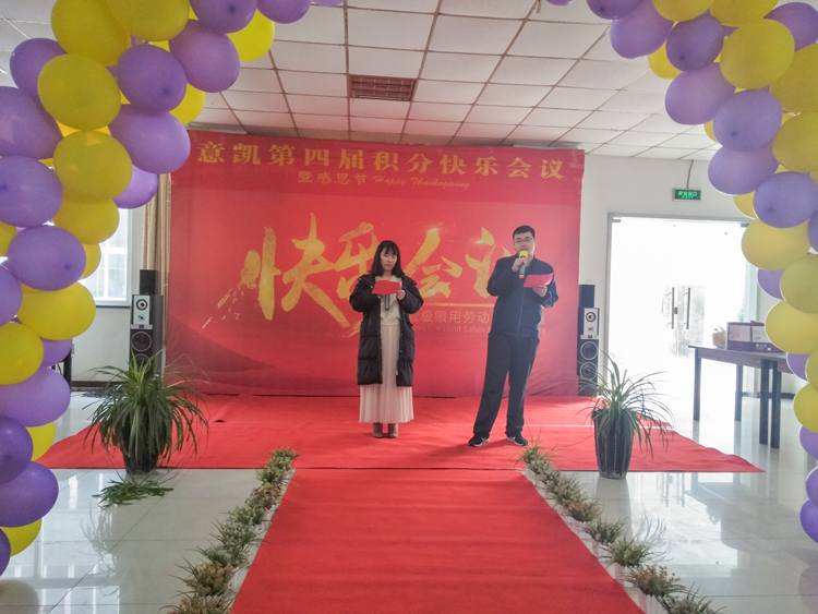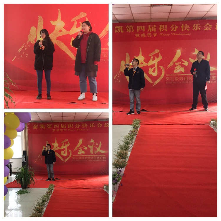 主持人宣布快樂會議開幕,首先就意凱董事長宋花江女士為第4期快樂會議的致辭。在宋董事長的致辭中,提到了感恩我們的衣食父母,意凱的廣大新老客戶們,為了更好的回饋,重申了工匠精神,宋總要求每一部門、每個崗位都要做到精益求精,一絲不茍。并帶領全體員工一同誦讀公司核心價值觀,讓意凱核心價值觀滲入意凱每個員工的工作當中!