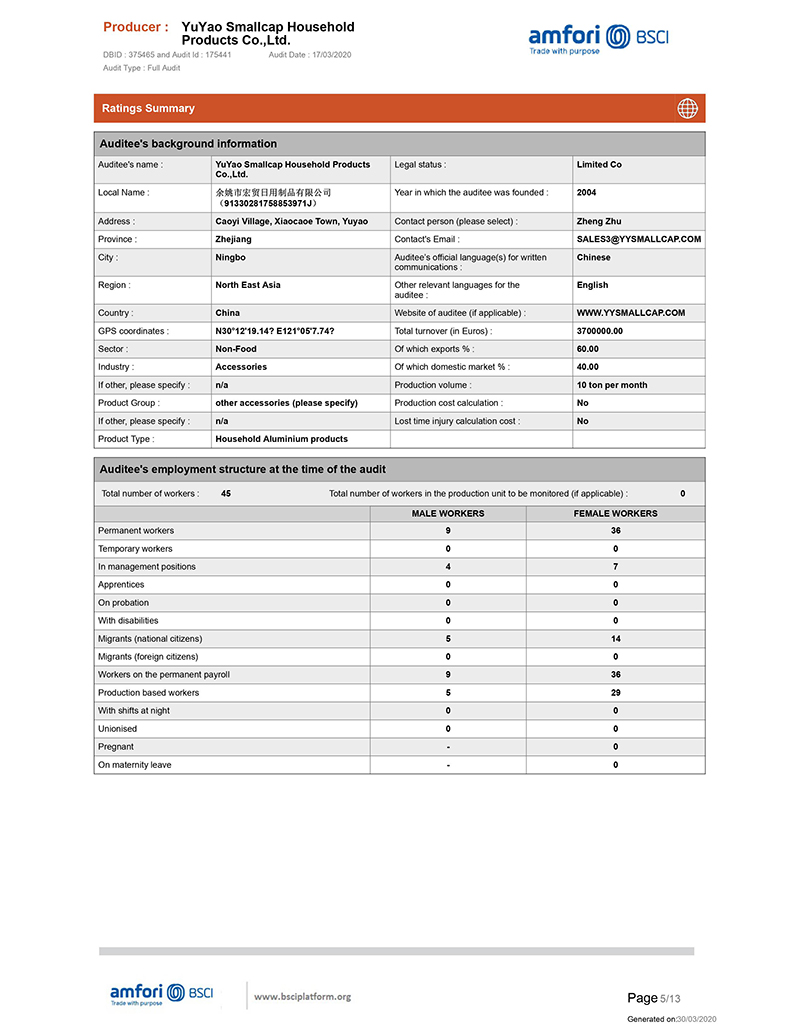 We get the BSCI certificate, it is not easy, we are so happy that our certificate can be approval as per the walmart audit standard.